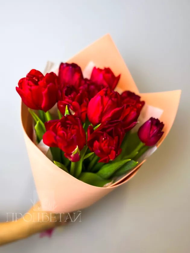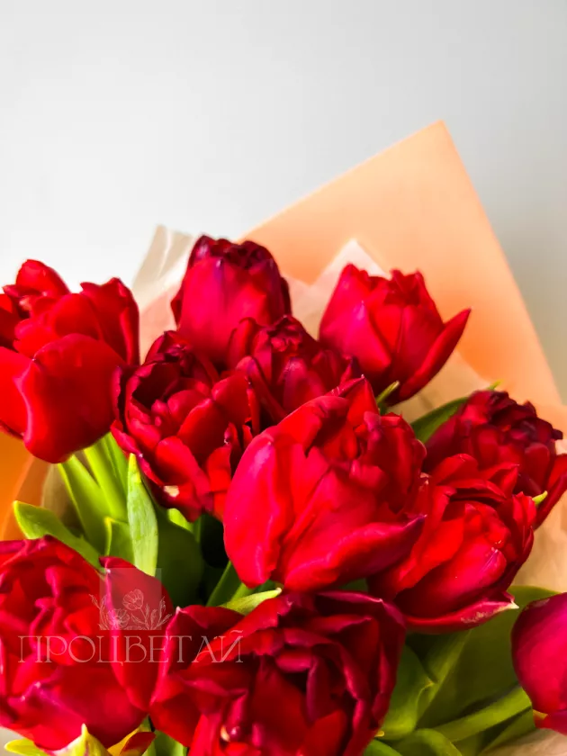 Букет из красных пионовидных тюльпанов