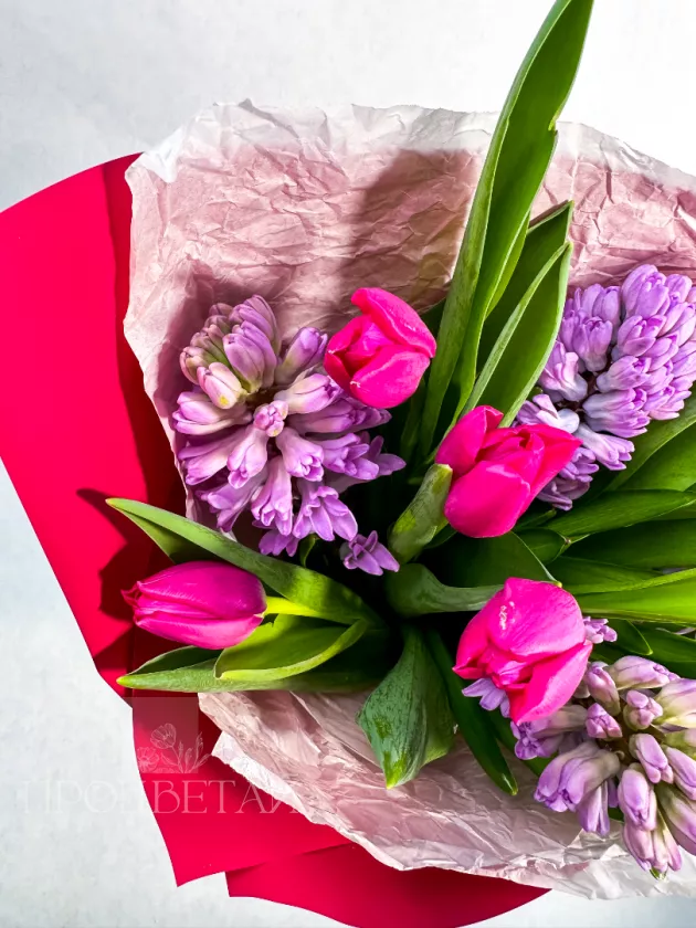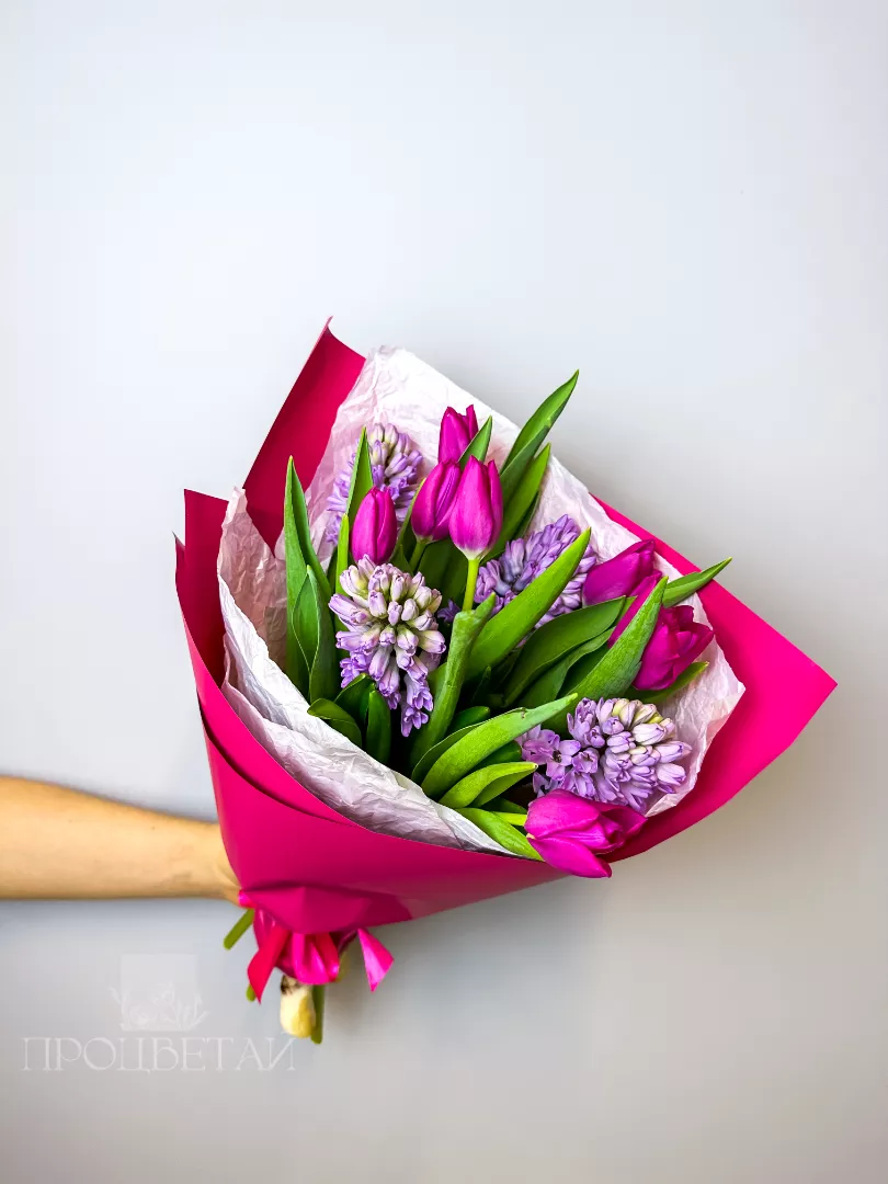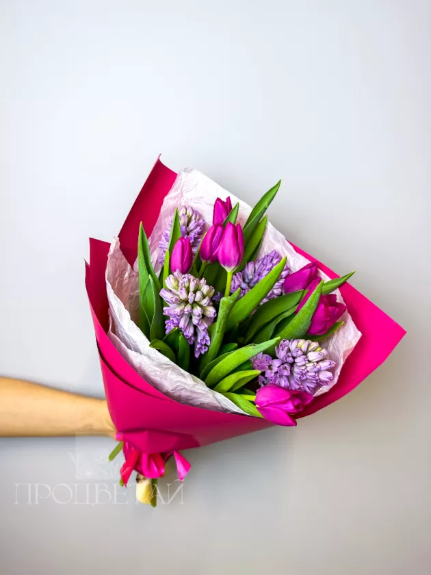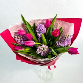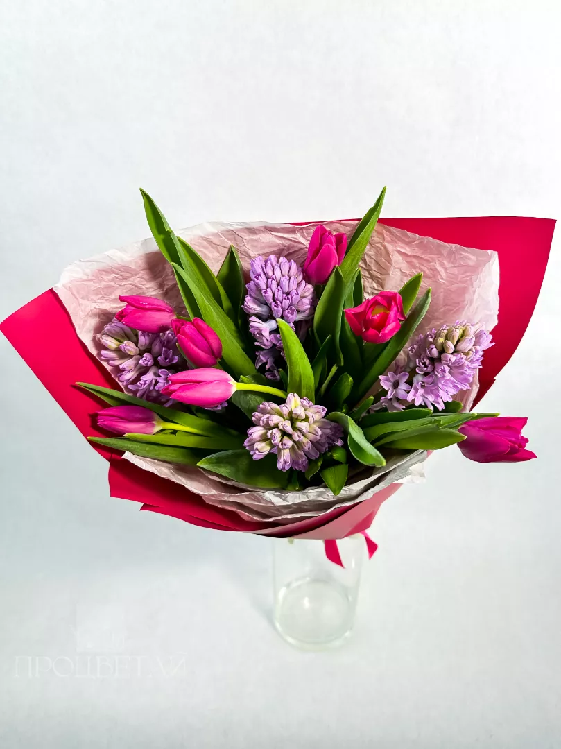 Букет из розовых тюльпанов и гиацинтов