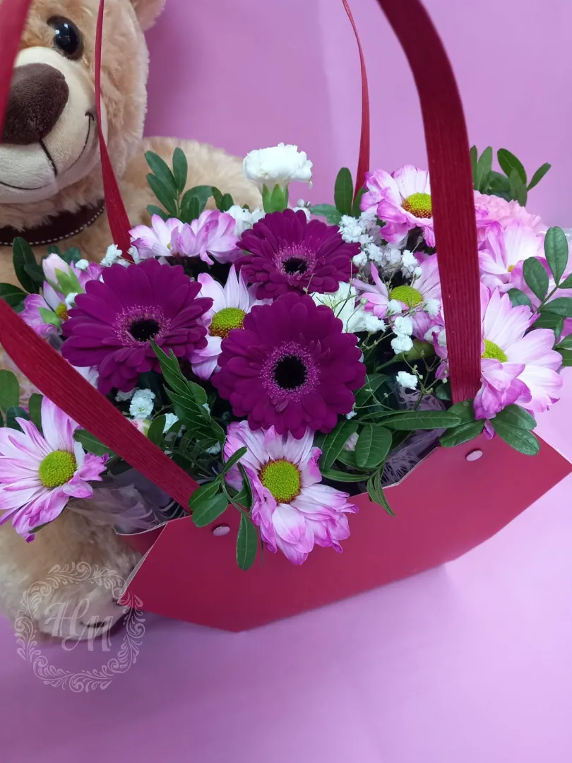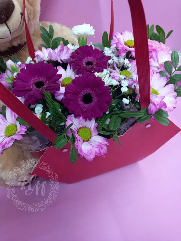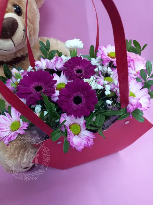Основные 3 герберы, дальше состав определят флорист из наличия