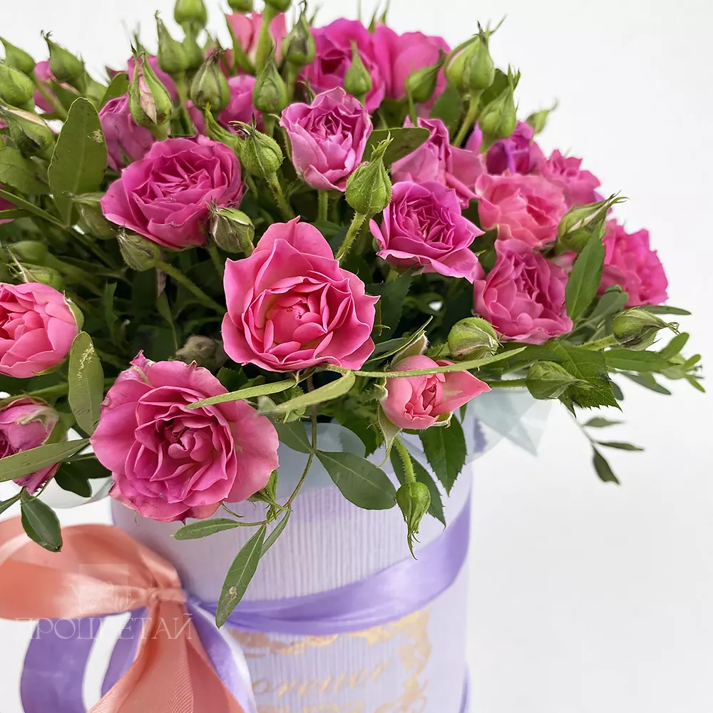 кустовые розы в шляпной коробке, незаменимая классика