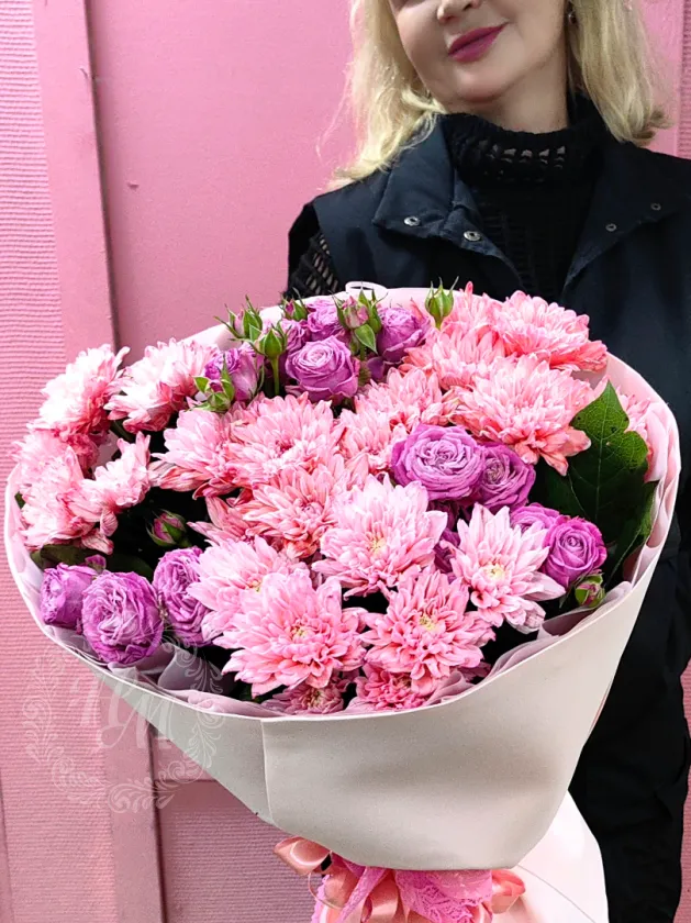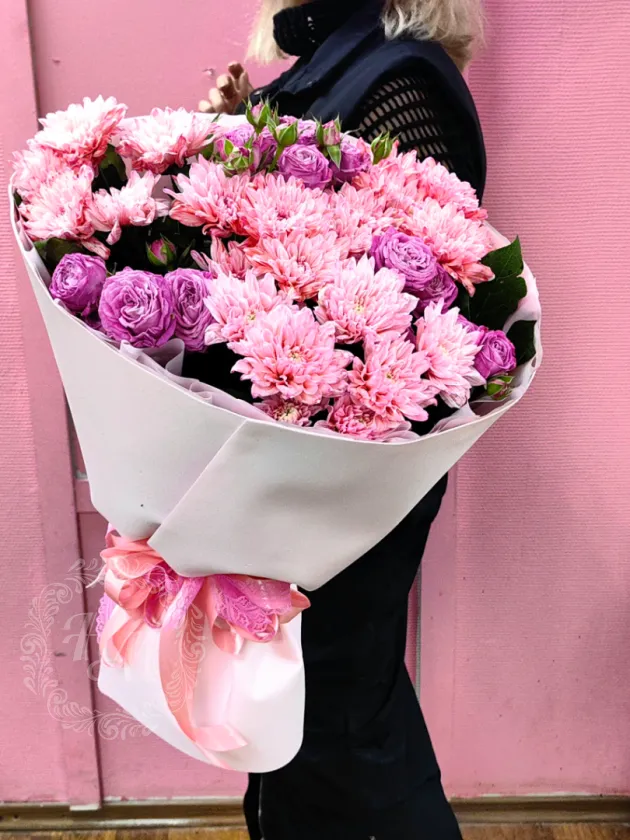 Кустовые розы и хризантемы