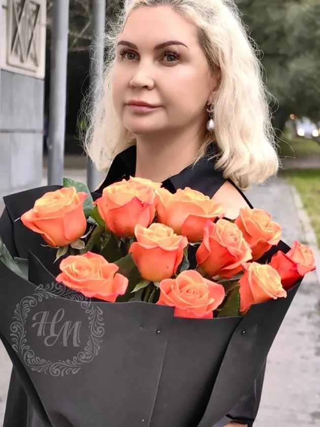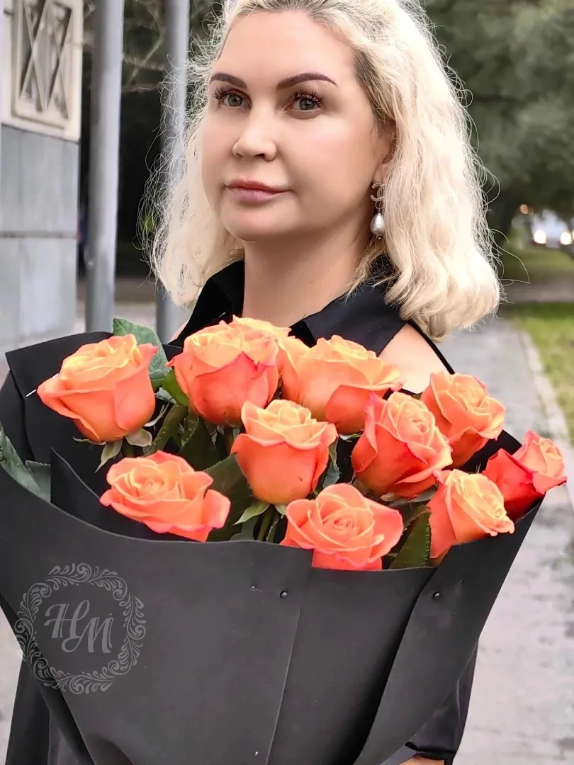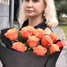 11 оранжевых роз в черном Фомиран