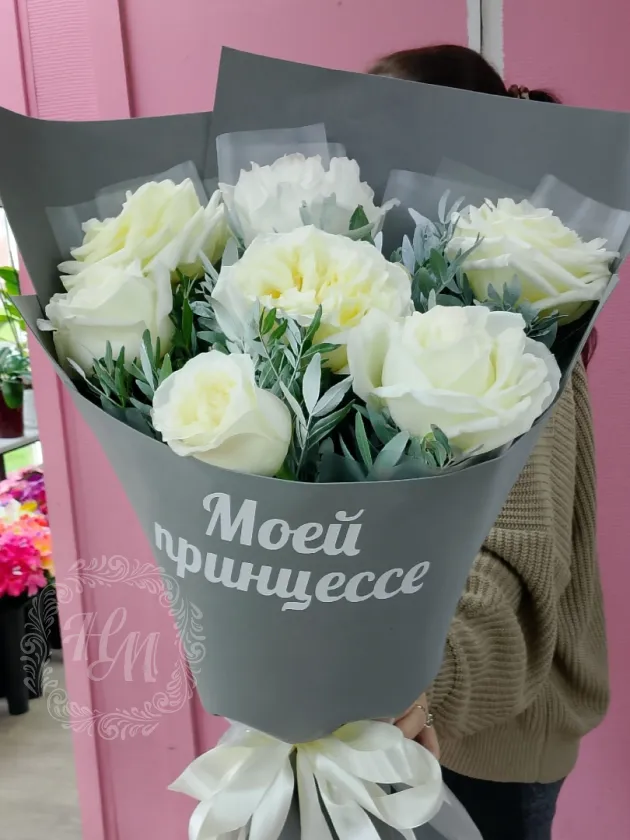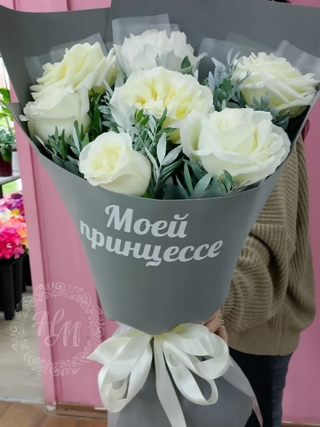 7 белых ароматных роз конделайт, крашеная Зелень, наклейка моей принцесе