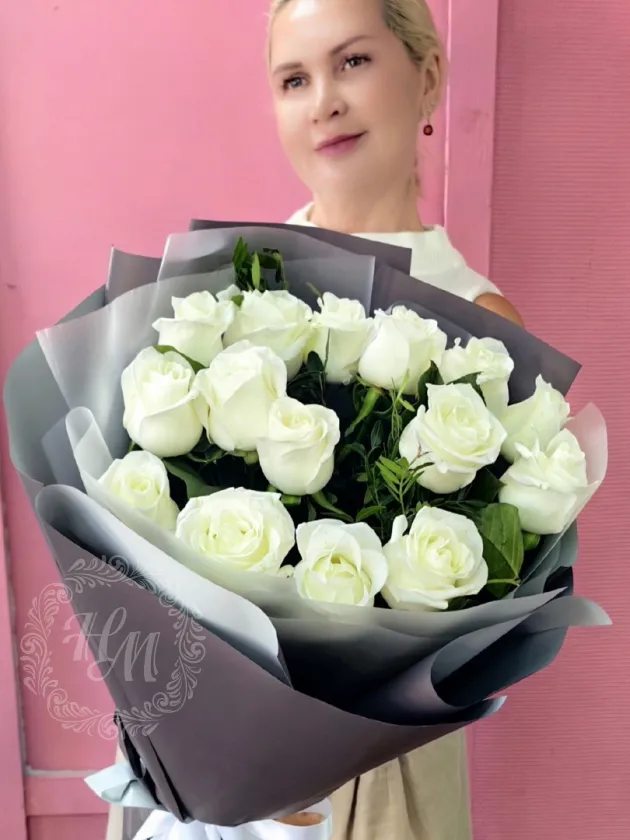15 белых розт, сорт аваланш